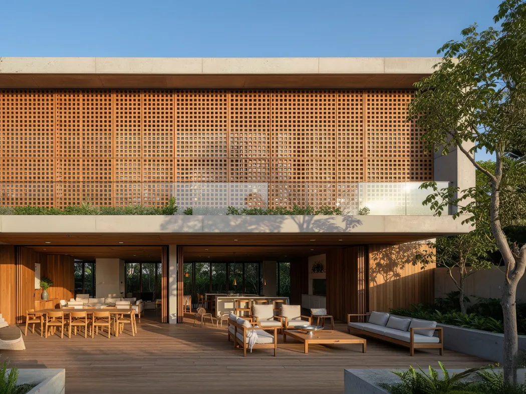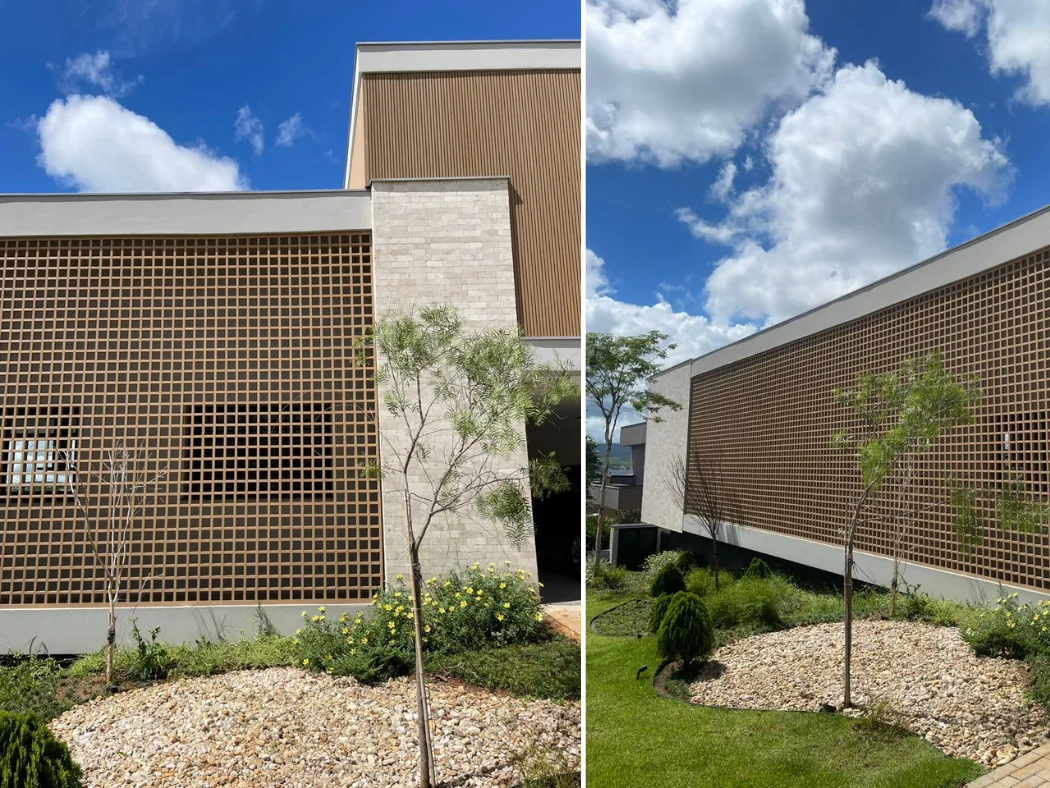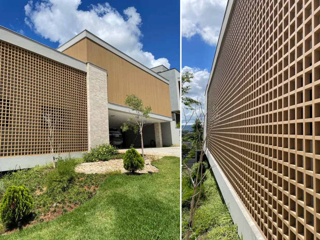 Ideal para fachadas que respiran, muros que filtran la luz con elegancia y divisiones que ofrecen privacidad sin perder la conexión visual. Este producto aporta calidez a través de su textura natural tipo madera y destaca por su diseño contemporáneo y minimalista.