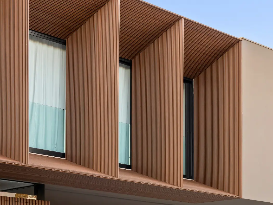 Paneles ripado en madera WPC de alto rendimiento que despiertan la esencia de la naturaleza en cada espacio, envolviendo interiores y exteriores con una elegancia cálida, auténtica y atemporal. Su textura natural captura la belleza viva de la madera, manteniéndose firme y perfecta con el paso del tiempo, sin grietas ni deterioro, como un reflejo duradero de armonía y equilibrio.