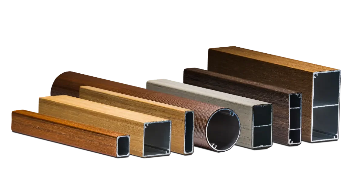 Perfiles fabricados en aluminio revestido con resina que combinan la estética de la madera natural con una alta resistencia a las condiciones climáticas. Su bajo mantenimiento y excelente durabilidad los convierten en una solución ideal para aplicaciones exteriores.