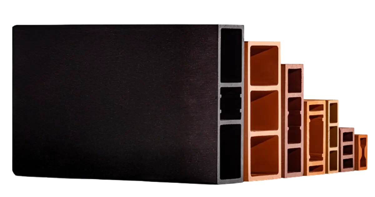 Perfiles de segunda generación fabricados en madera ecológica y HDPE, diseñados para aplicaciones decorativas tanto en interiores como en exteriores. Destacan por su alta resistencia a la intemperie, ligereza, versatilidad y bajo mantenimiento.