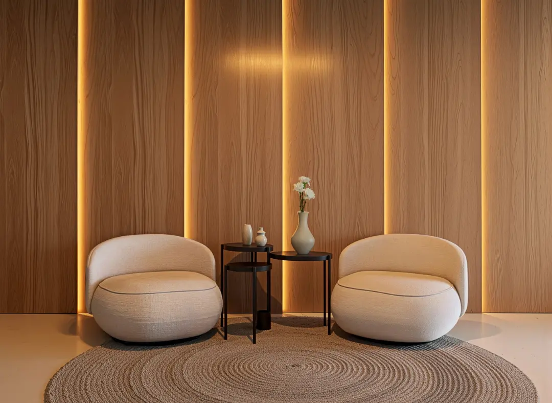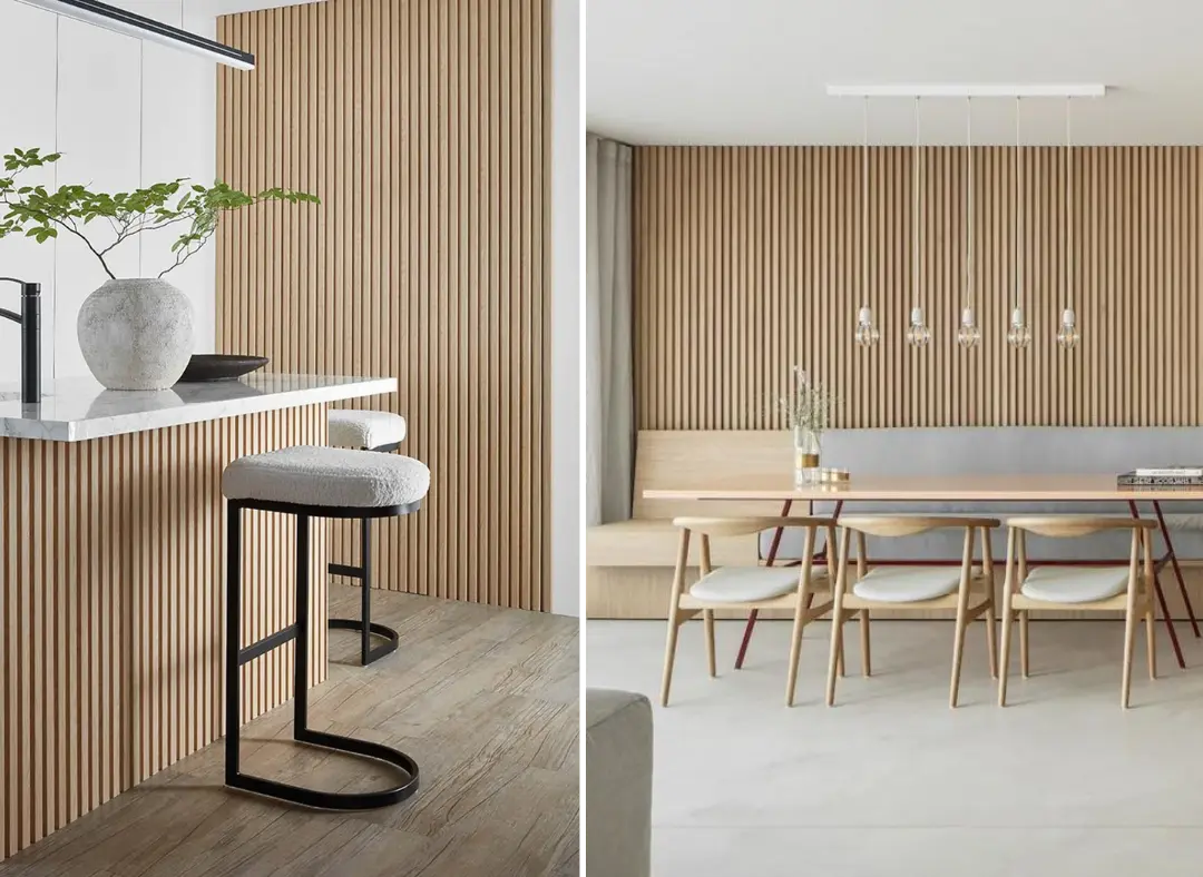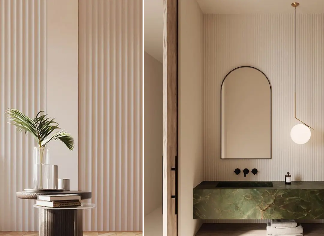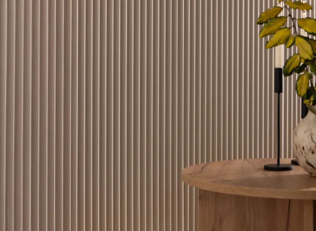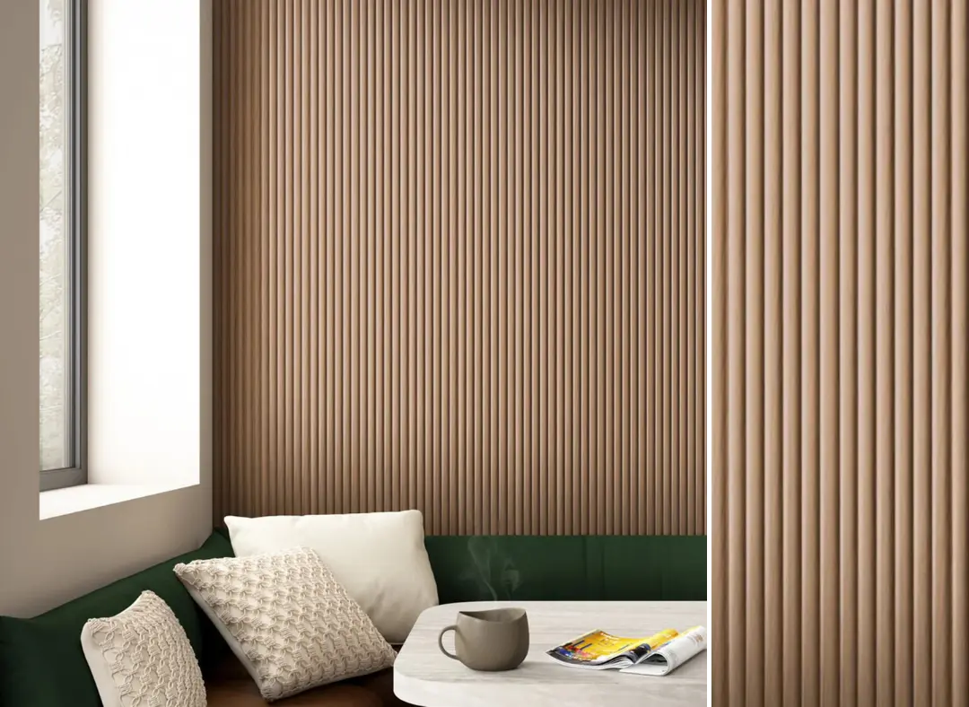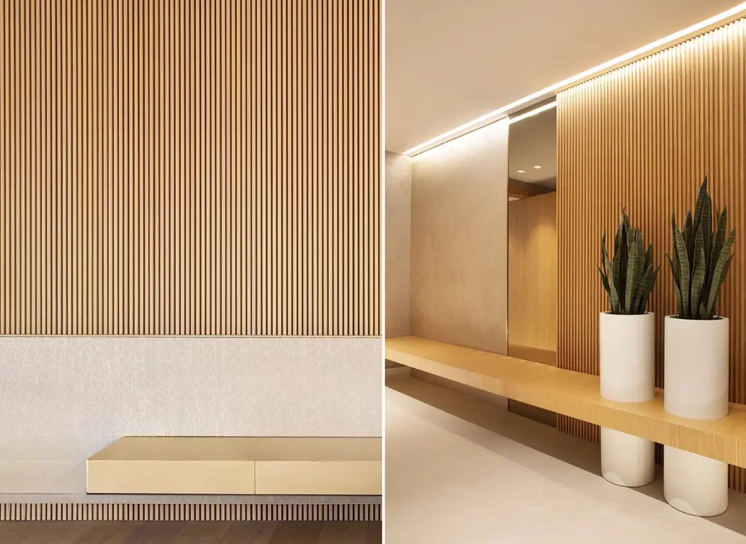 Paneles arquitectónicos de madera ecológica en versiones lisas, listonadas y cóncavas, diseñados para transformar espacios interiores con una propuesta estética y técnica de alto nivel.