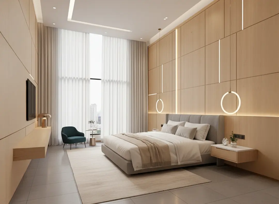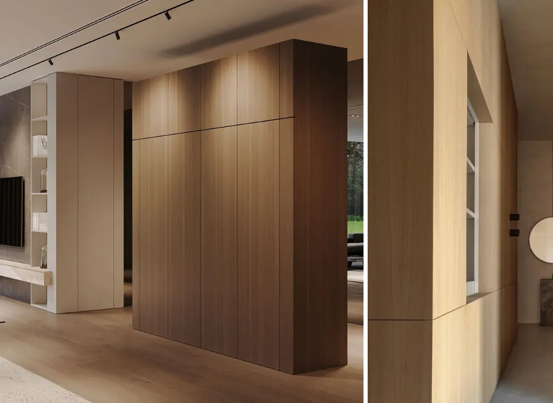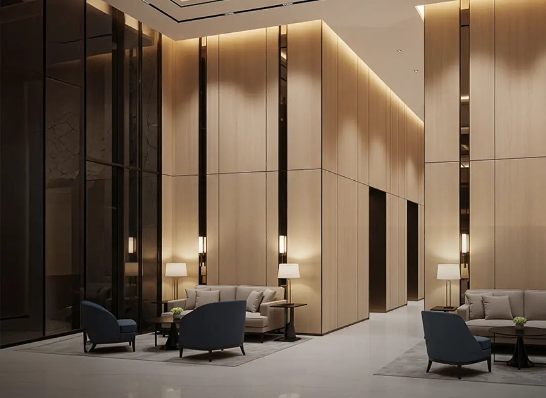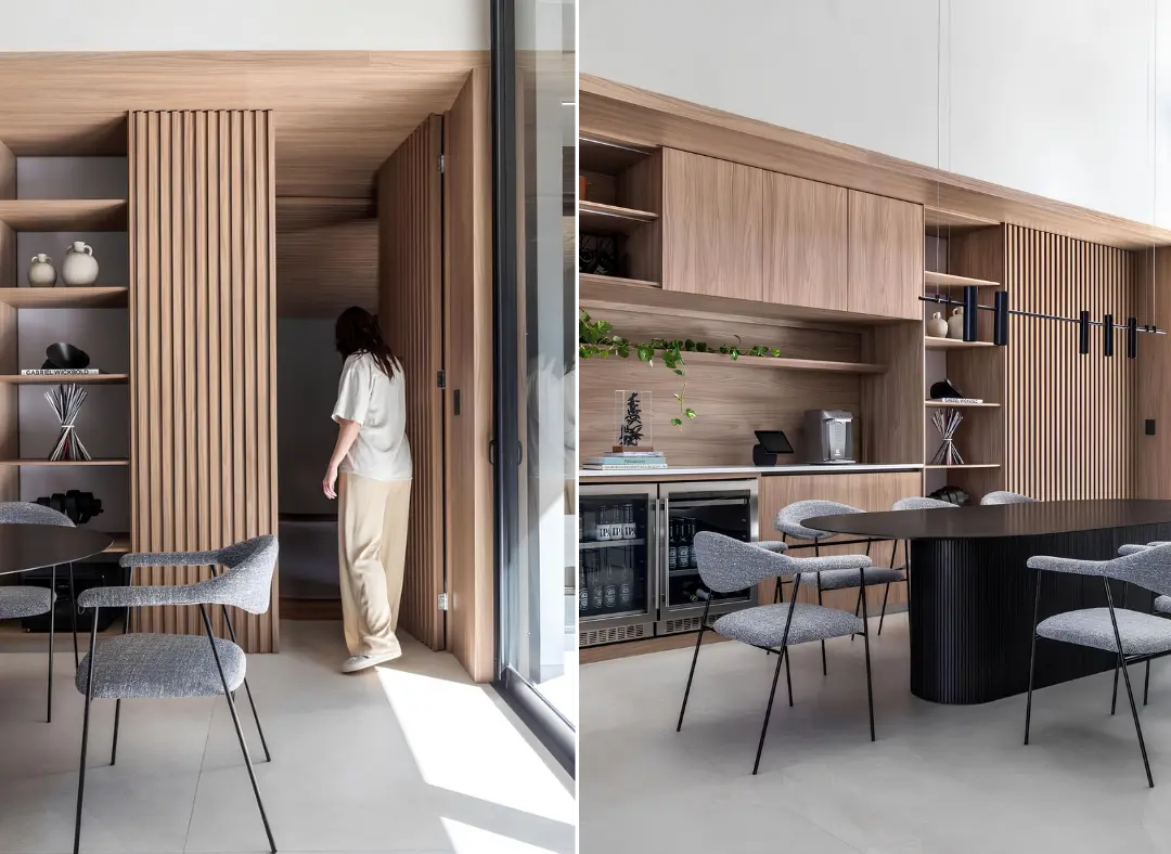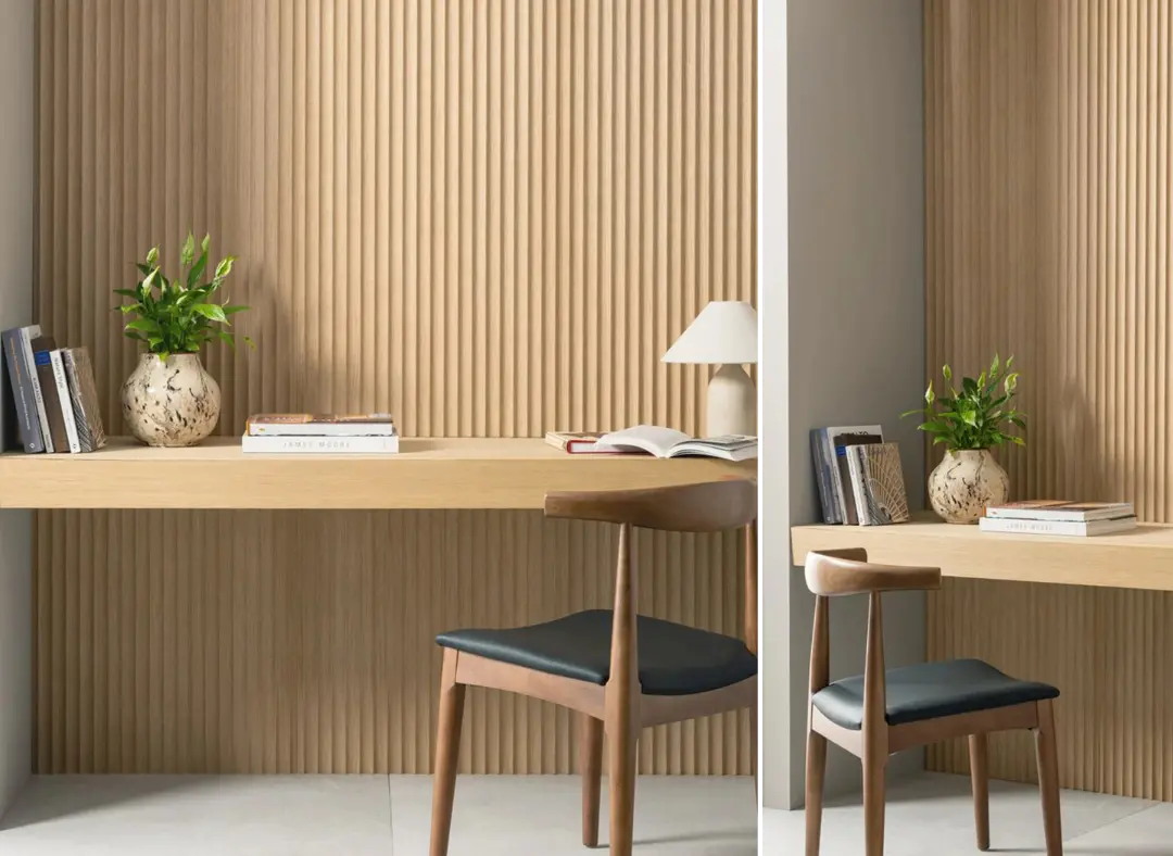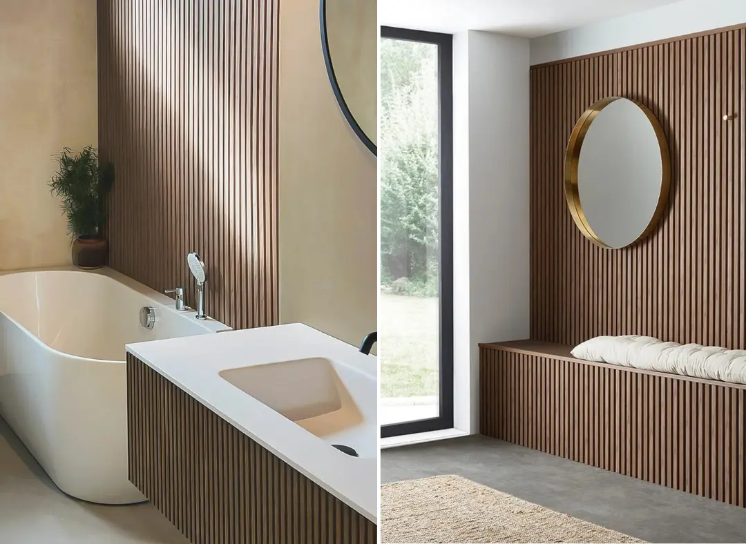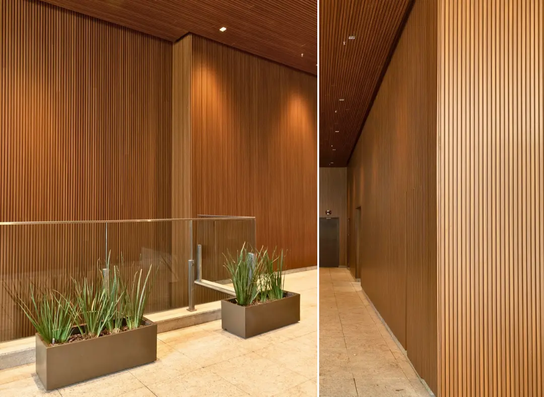 Paneles arquitectónicos de madera ecológica en versiones lisas, listonadas y cóncavas, diseñados para transformar espacios interiores con una propuesta estética y técnica de alto nivel.