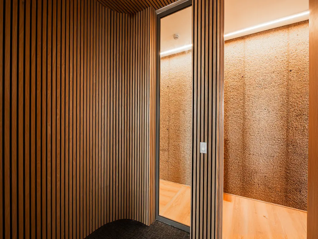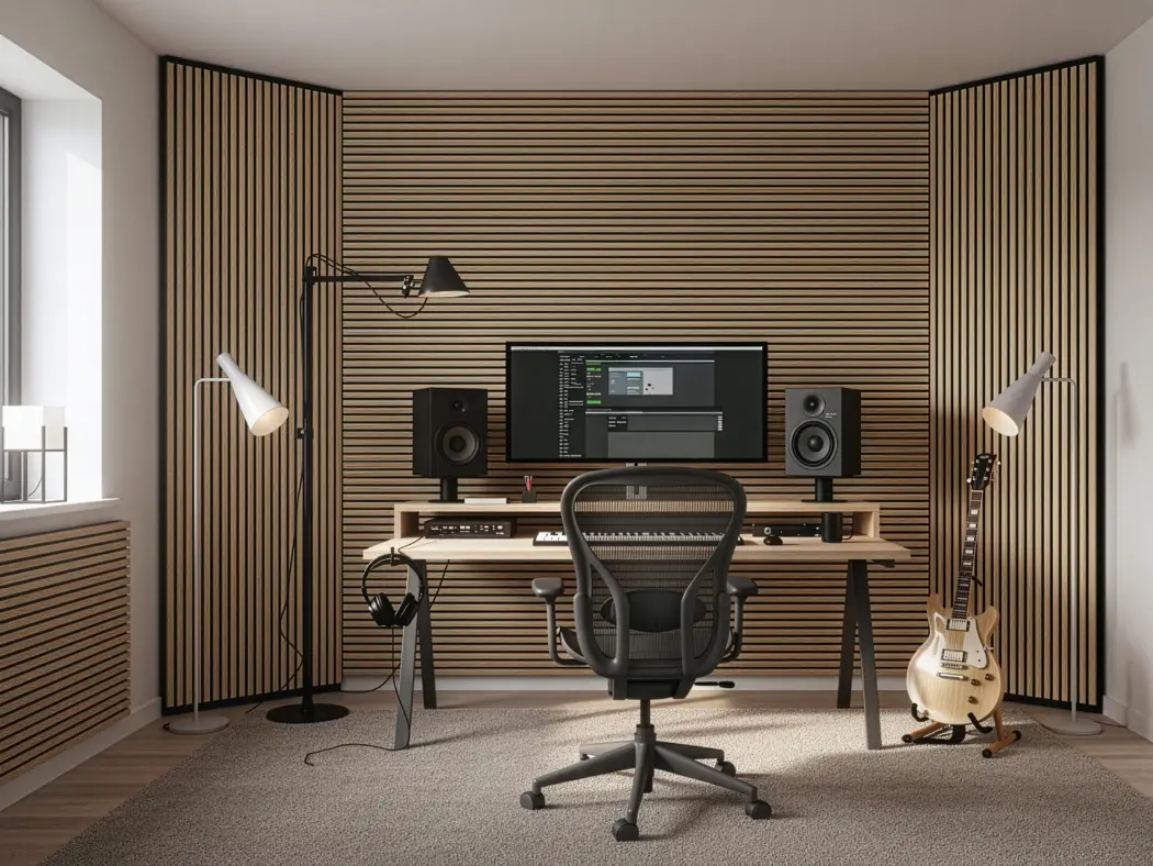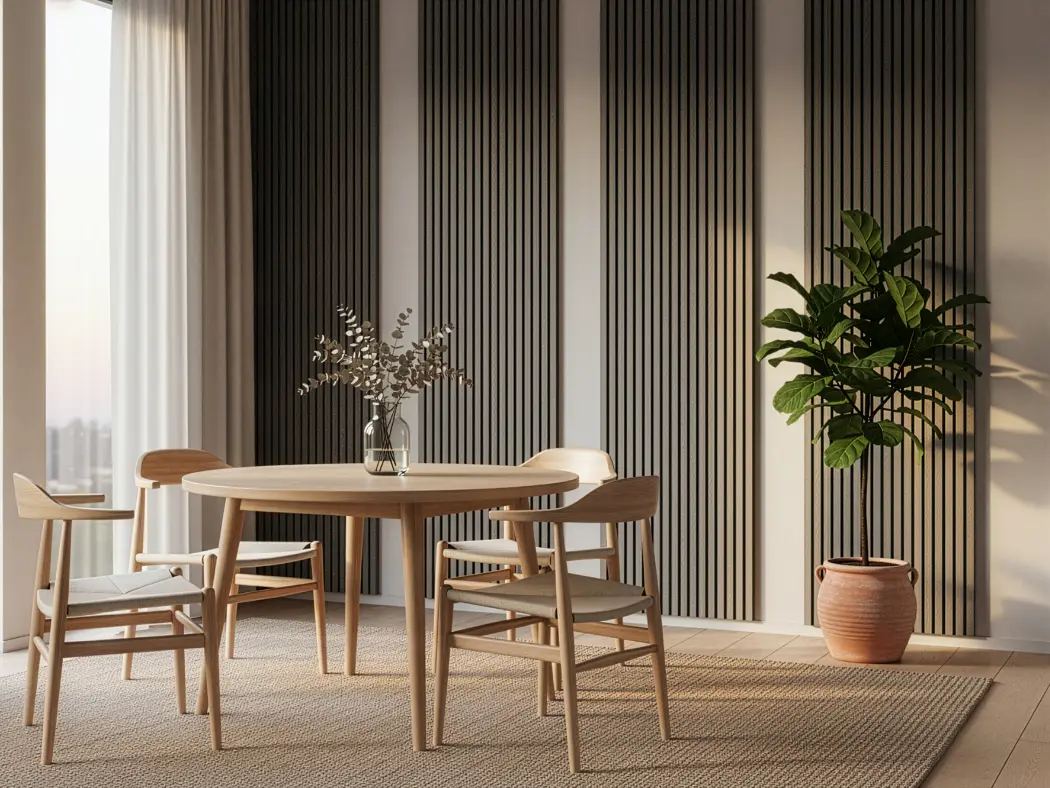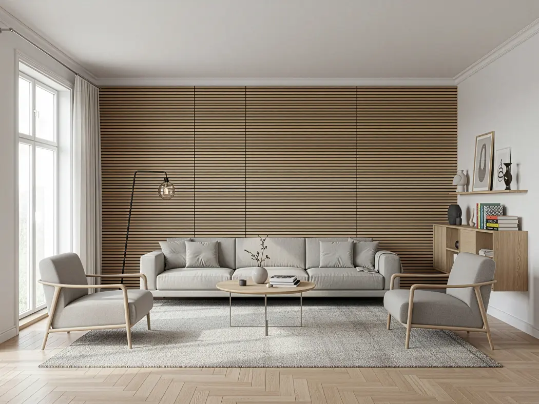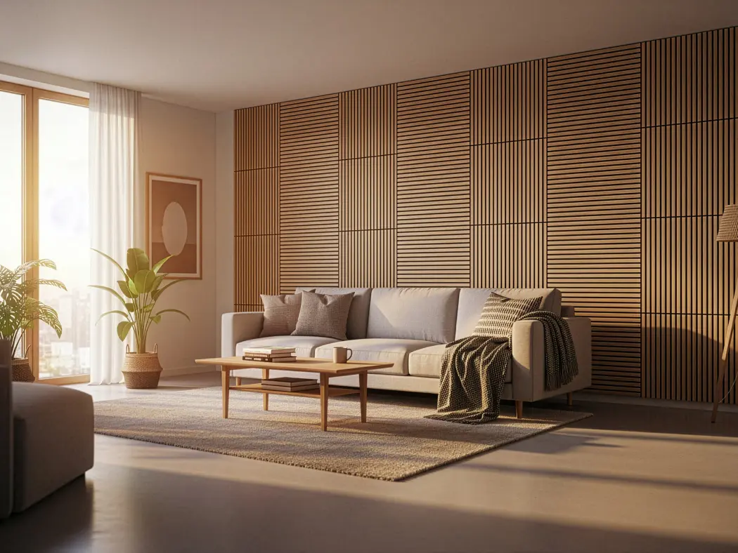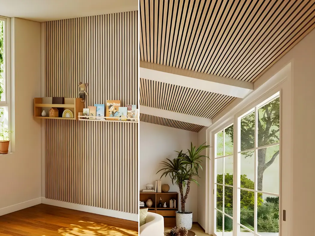 Panel maderable ripiado con apariencia natural, capaz de otorgar no solo un mejor acabado y apariencia a sus proyectos, sino también mejorando y otorgando un aislamiento acústico dentro de sus espacios. Estos paneles están compuestos principalmente de MDF (tablero de fibra de densidad media), que es conocida por su durabilidad, resistencia y facilidad de manipulación. La chapilla de madera natural, aplicada sobre la superficie del MDF, proporciona una apariencia elegante y natural que puede realzar cualquier ambiente interior.