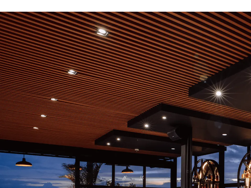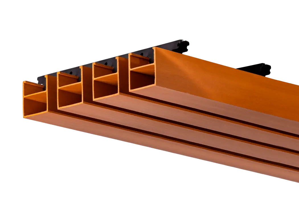 Perfiles en WPC aligerado que transforman los espacios con diseño y calidez.