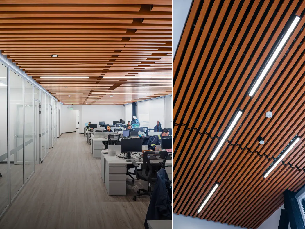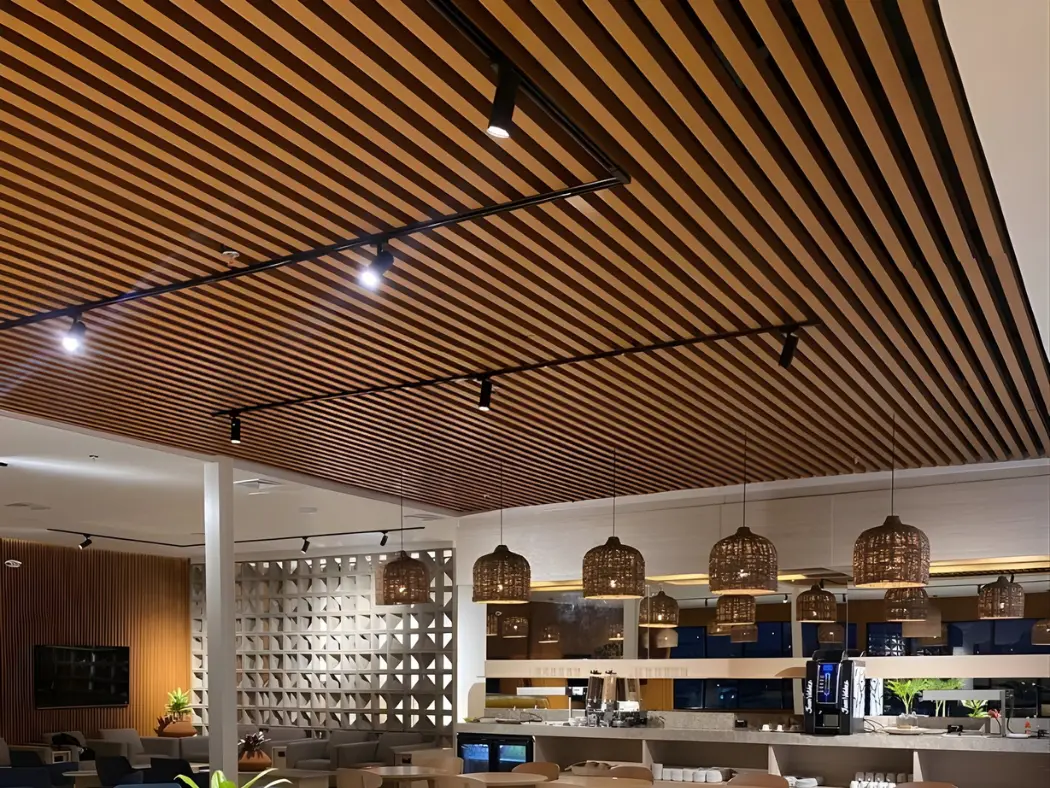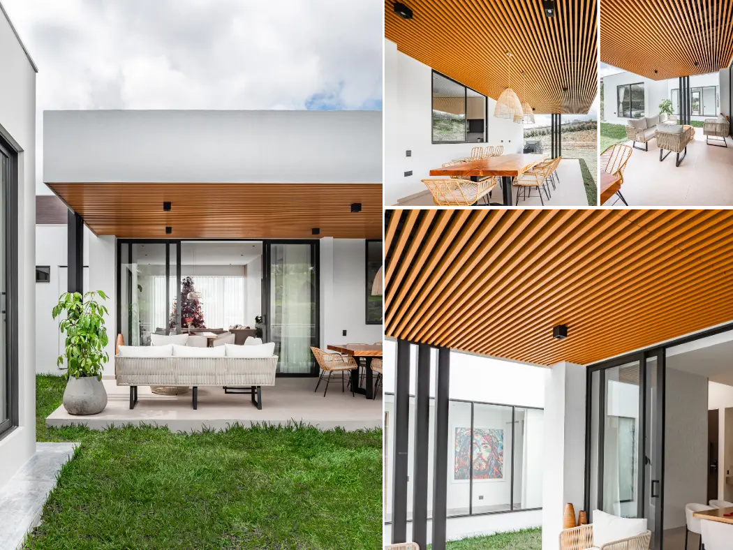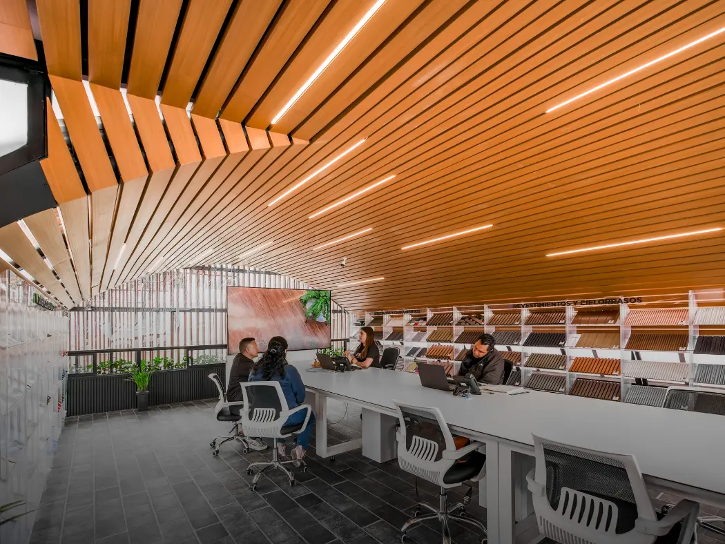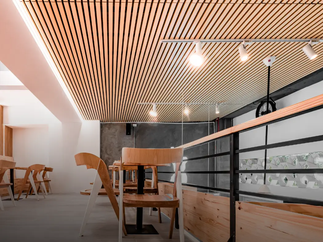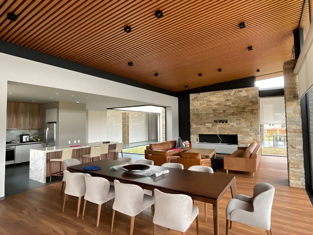 Su versatilidad las convierte en la solución ideal para cielorrasos y revestimientos interiores, integrando estética y funcionalidad en cada detalle. Gracias a su sistema de fijación tipo click, la instalación es rápida, limpia y eficiente, optimizando tiempos en obra. Su acabado con apariencia natural de madera aporta elegancia, textura y una sensación acogedora, elevando el carácter de cualquier ambiente.